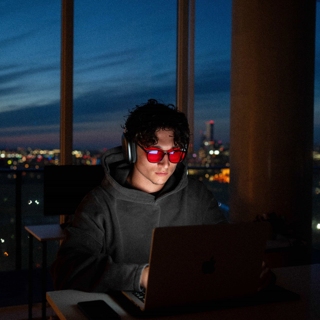 Flow State™ Unisex-Brille mit roten Gläsern und Blaulichtfilter - Onyx™ Nachtgebrauch Rot ist auf Lager und wird versandt, sobald es wieder verfügbar ist
